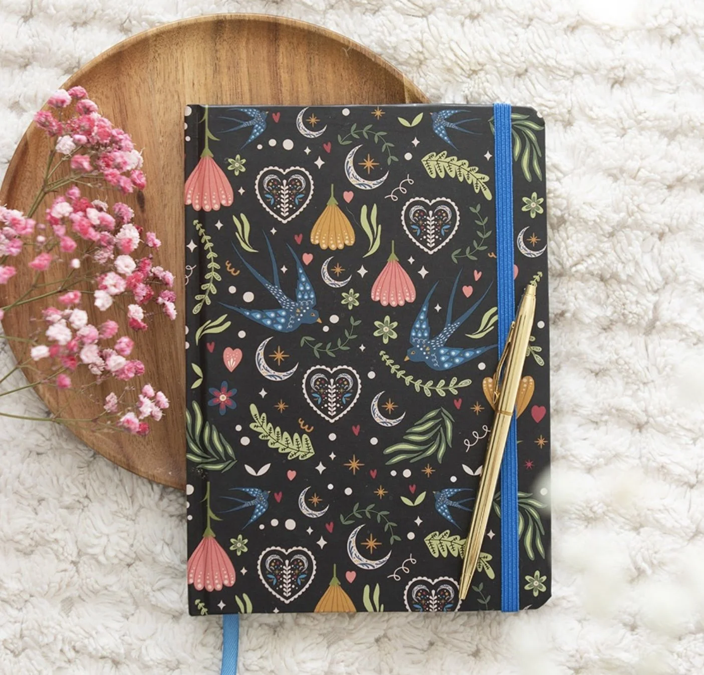 Stay organised in style with this A5 notebook featuring a bold all-over Midnight Bloom floral design. Perfect for jotting down ideas, lists or daily reflections at home, work or school. 100 sheets / 200 lined pages.