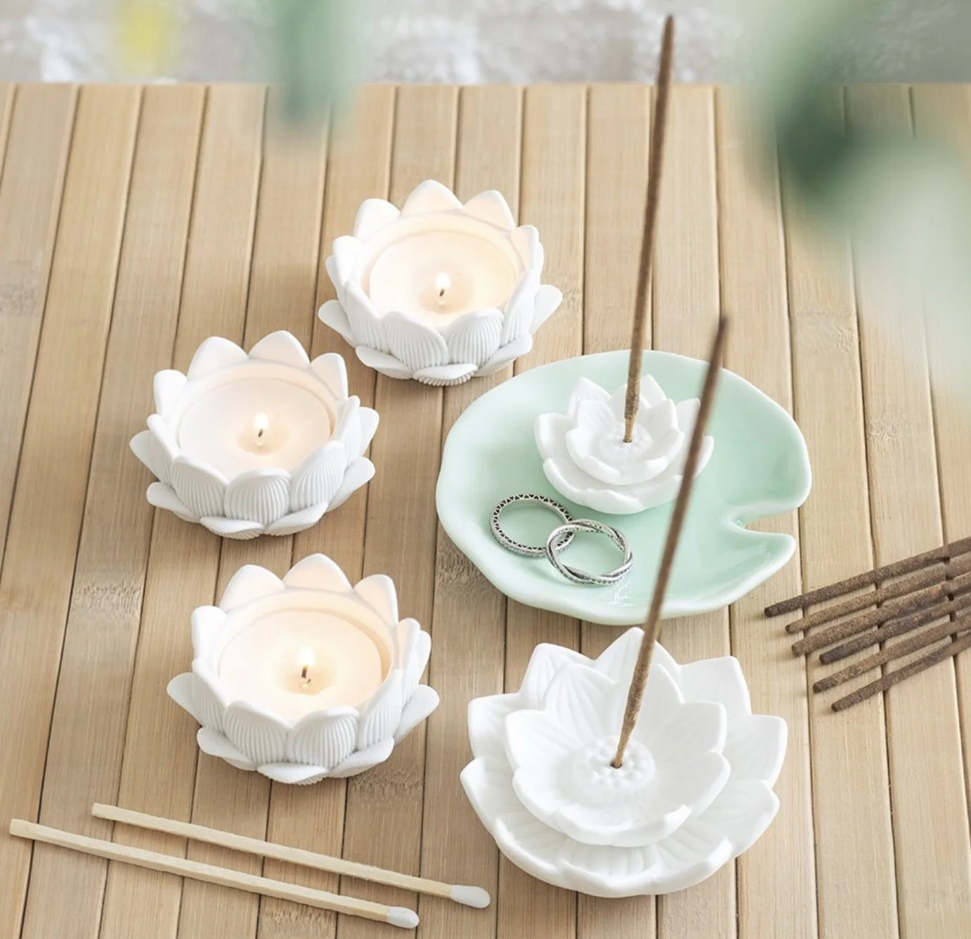 Beautiful and practical, this lotus flower incense stick holder doubles as a lovely trinket dish, perfect for holding rings, crystals or small keepsakes. A beautiful addition to meditation spaces or bedside tables, it makes a thoughtful gift for those who love calming details in their home. Please practice caution when burning, use a suitable incense stick holder and never leave lit incense unattended.