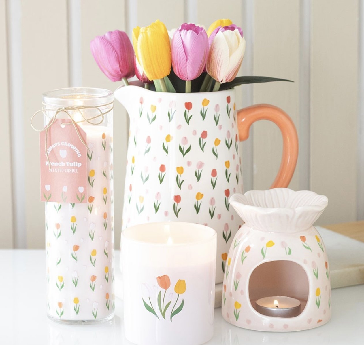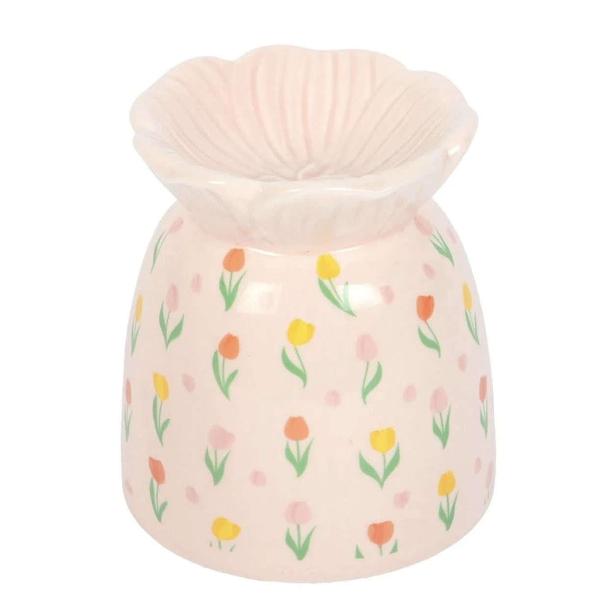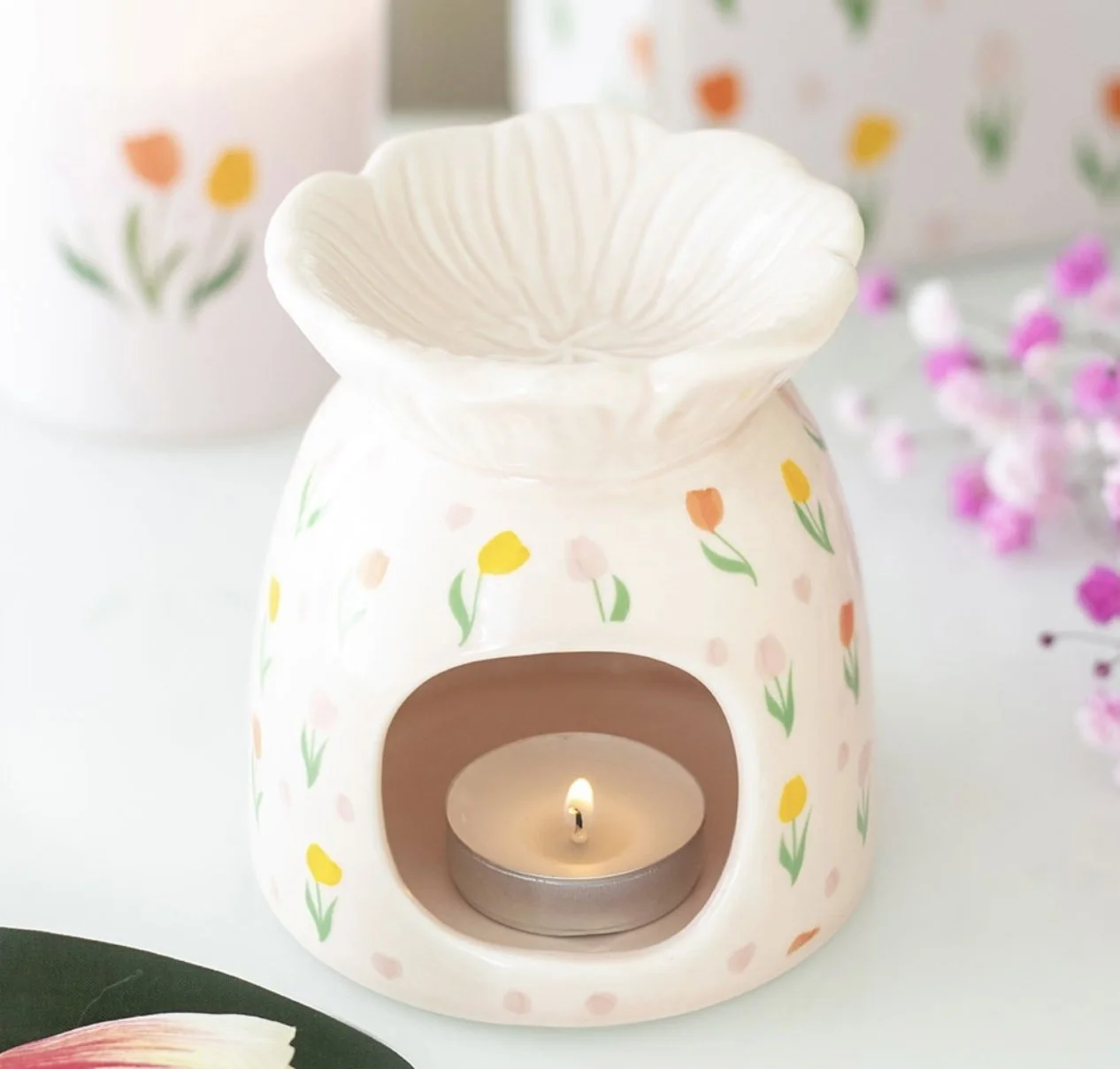 Fill your space with the scents of spring using this ceramic oil burner decorated with a colourful tulip print. Simply place a single standard tealight in the space at the back and add a few drops of diluted fragrance oil or wax melts in the bowl.