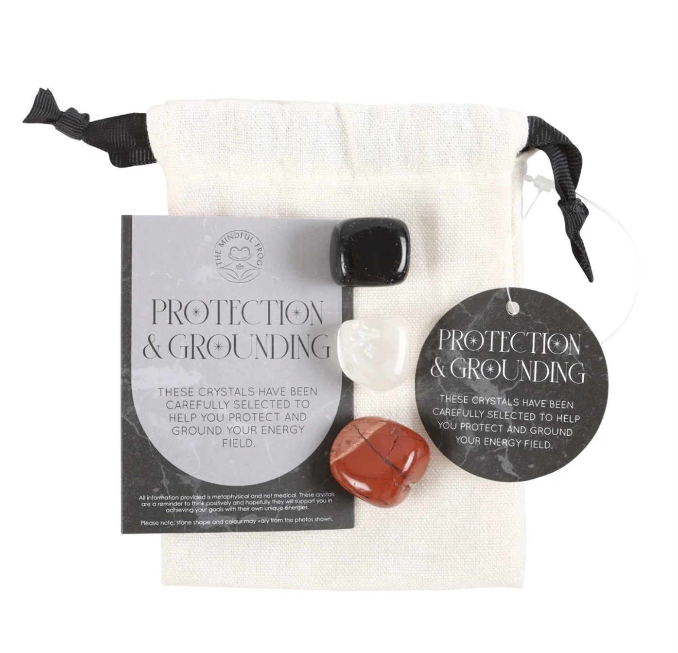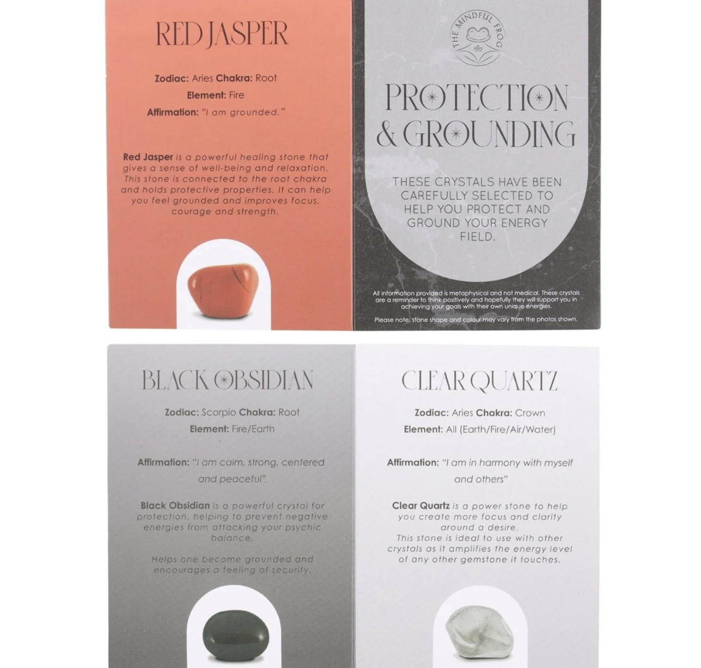 This Protection & Grounding crystal set includes a trio of healing stones selected for their strong protective properties. Black obsidian repels negative energies, clear quartz offers mental clarity and focus and red jasper enhances relaxation. Presented in a drawstring bag for easy storage and accompanied by an informative insert card, this set of crystals makes a thoughtful and practical gift for anyone seeking spiritual and financial abundance.