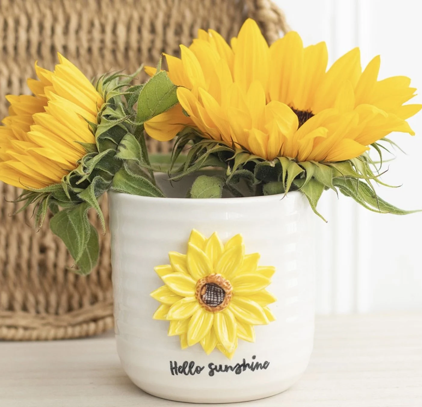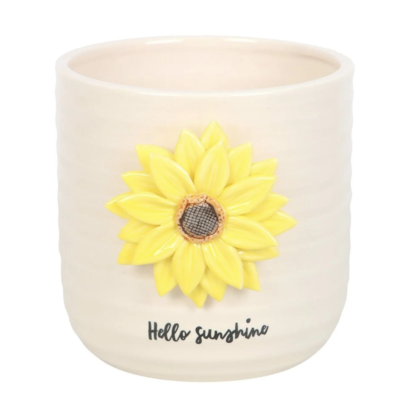 Brighten up any space with this ceramic plant pot, adorned with a beautiful 3D sunflower design and cheerful 'Hello Sunshine' text. Perfect for showcasing favourite plants or flowers, this plant pot brings warmth to any room, garden or windowsill to create a welcoming display.