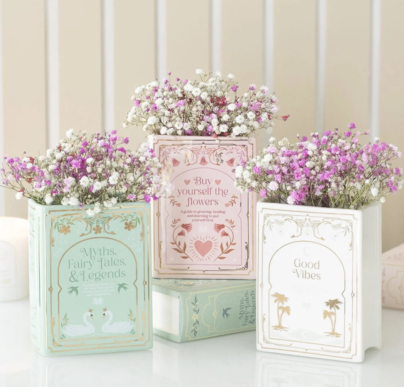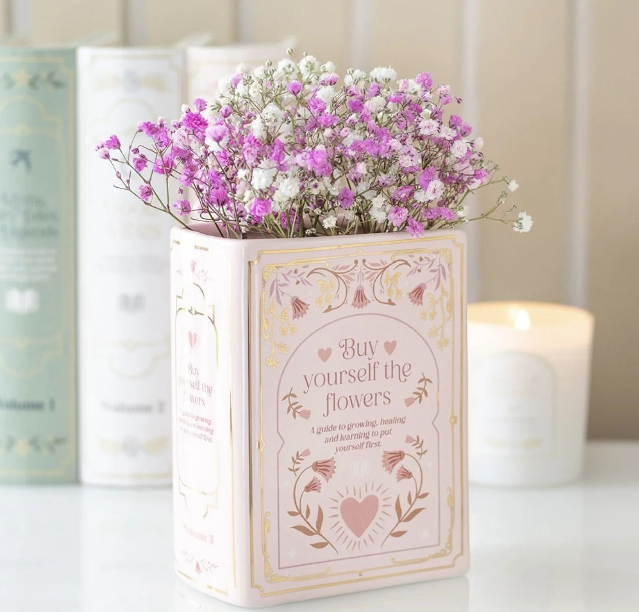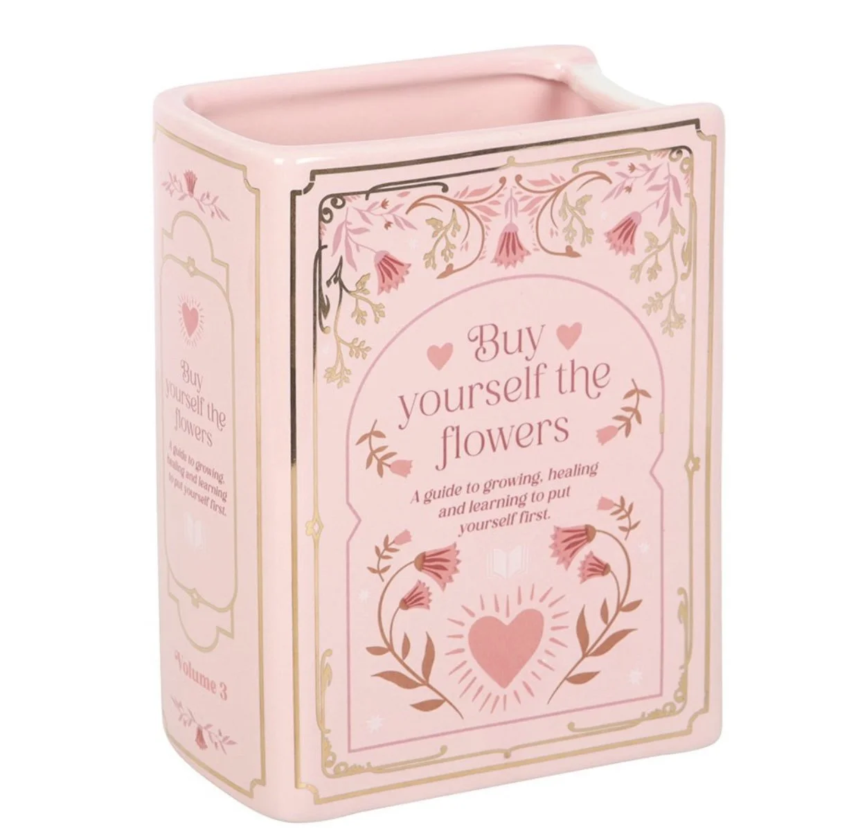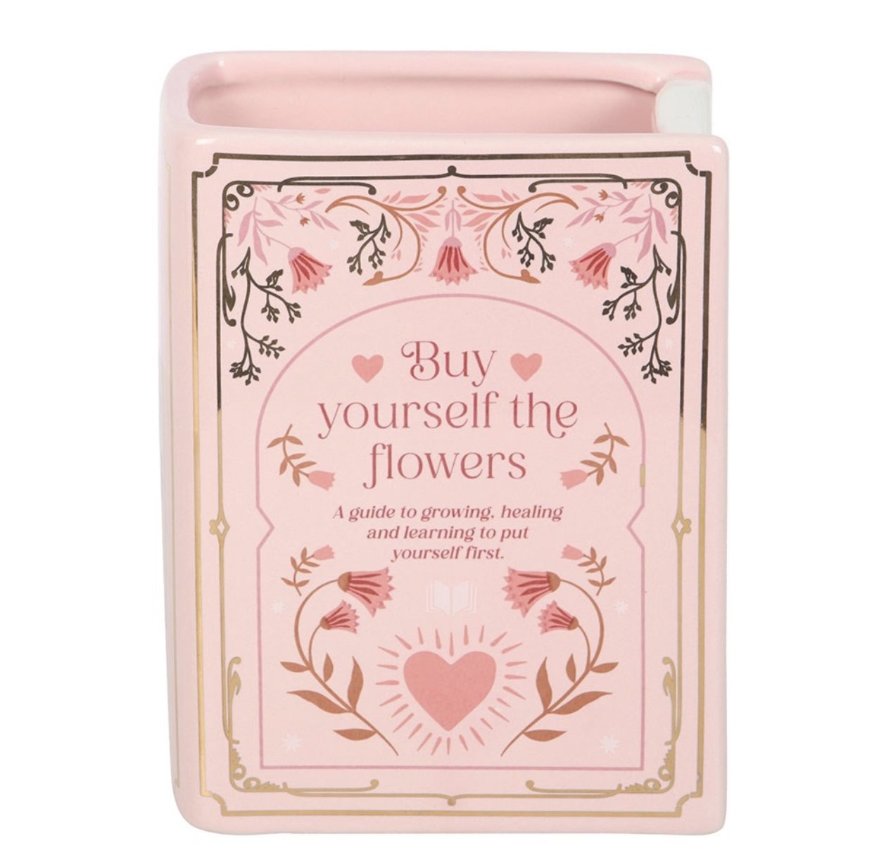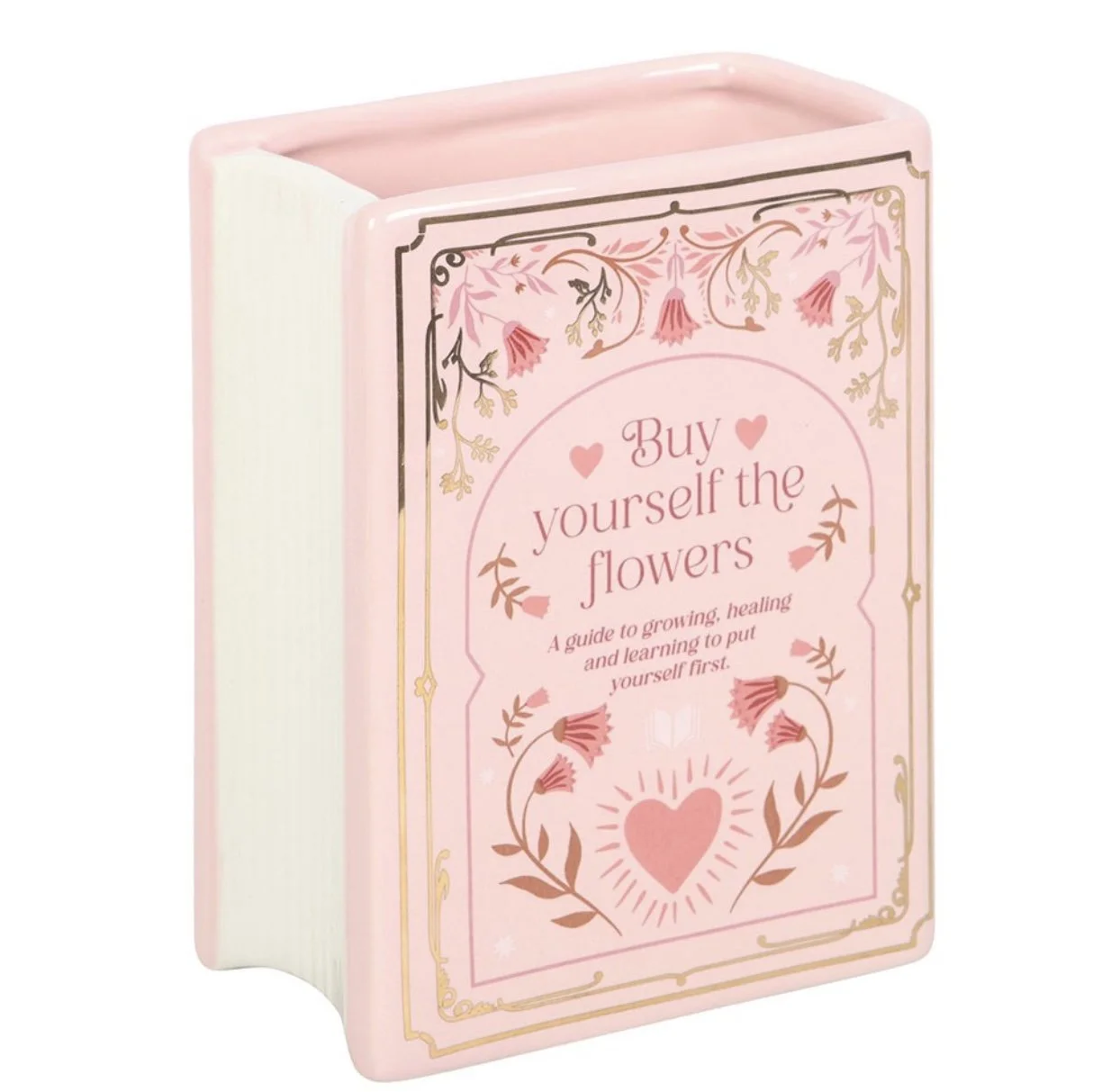 Bring a literary flourish to your space with this pink ceramic vase designed in the shape of an upright book. A striking home accessory for book lovers, perfect for displaying fresh blooms or dried flowers on bookshelves, desks, or reading nooks. 600ml.