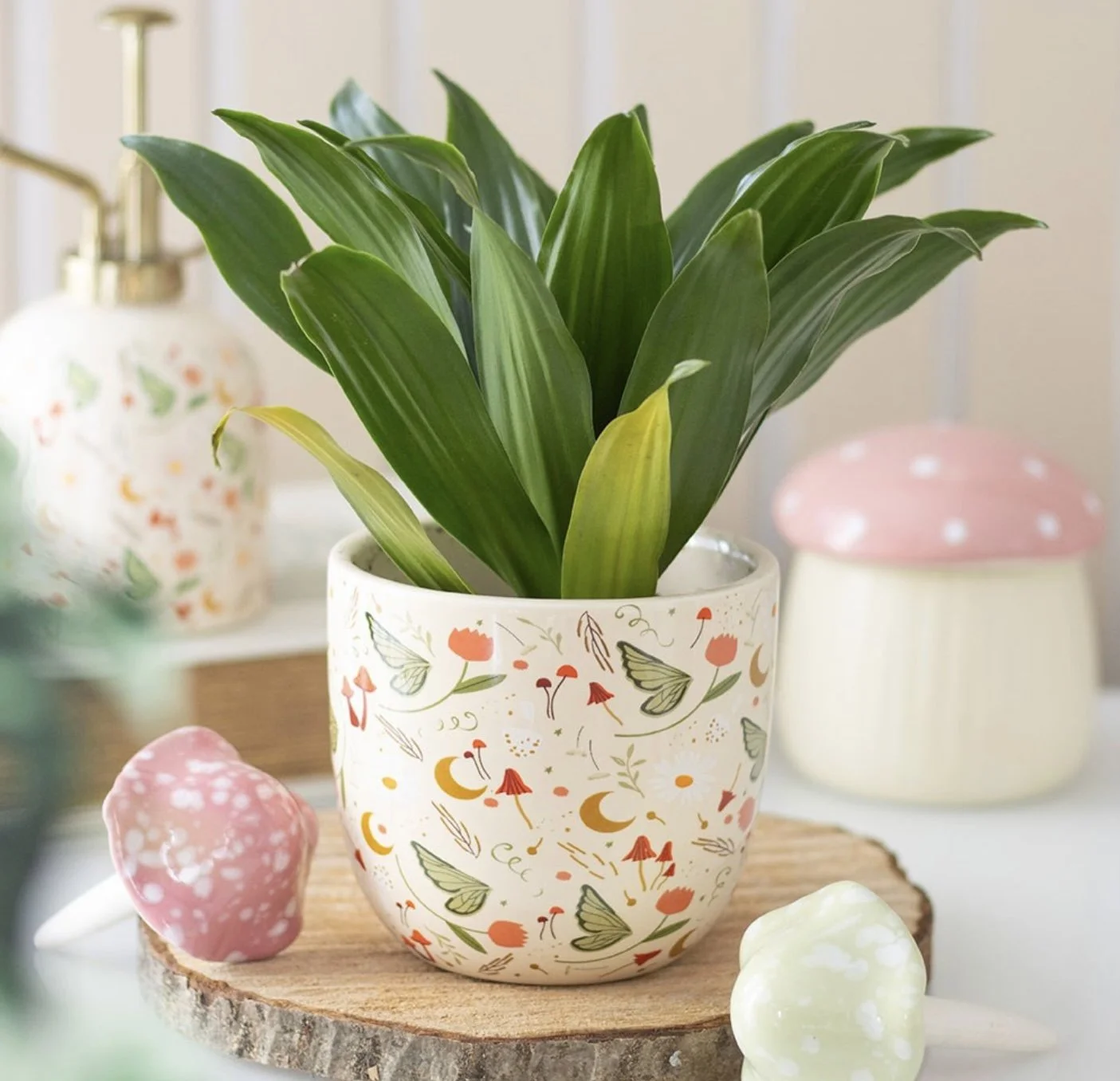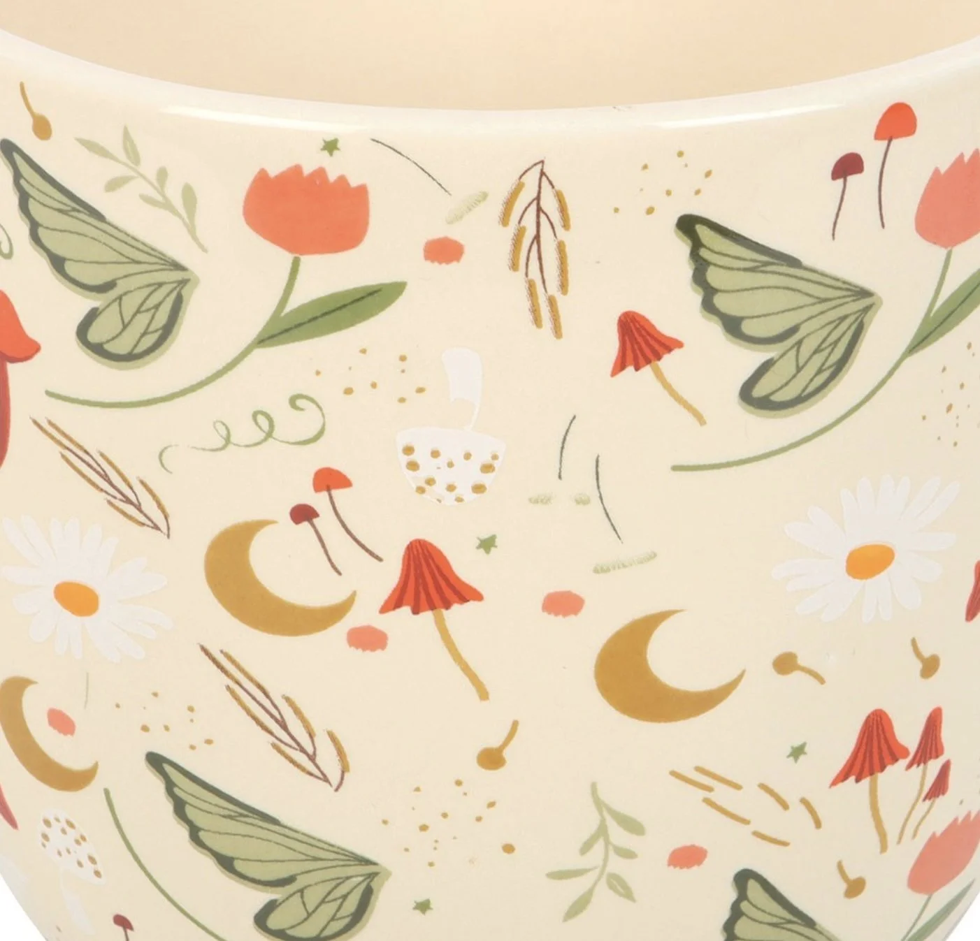 Add a little fairy tale flair to your indoor garden with this ceramic plant pot featuring a whimsical garden fairy print. Perfect for small houseplants, this pot will add woodland magic to any windowsill, desk or shelf.